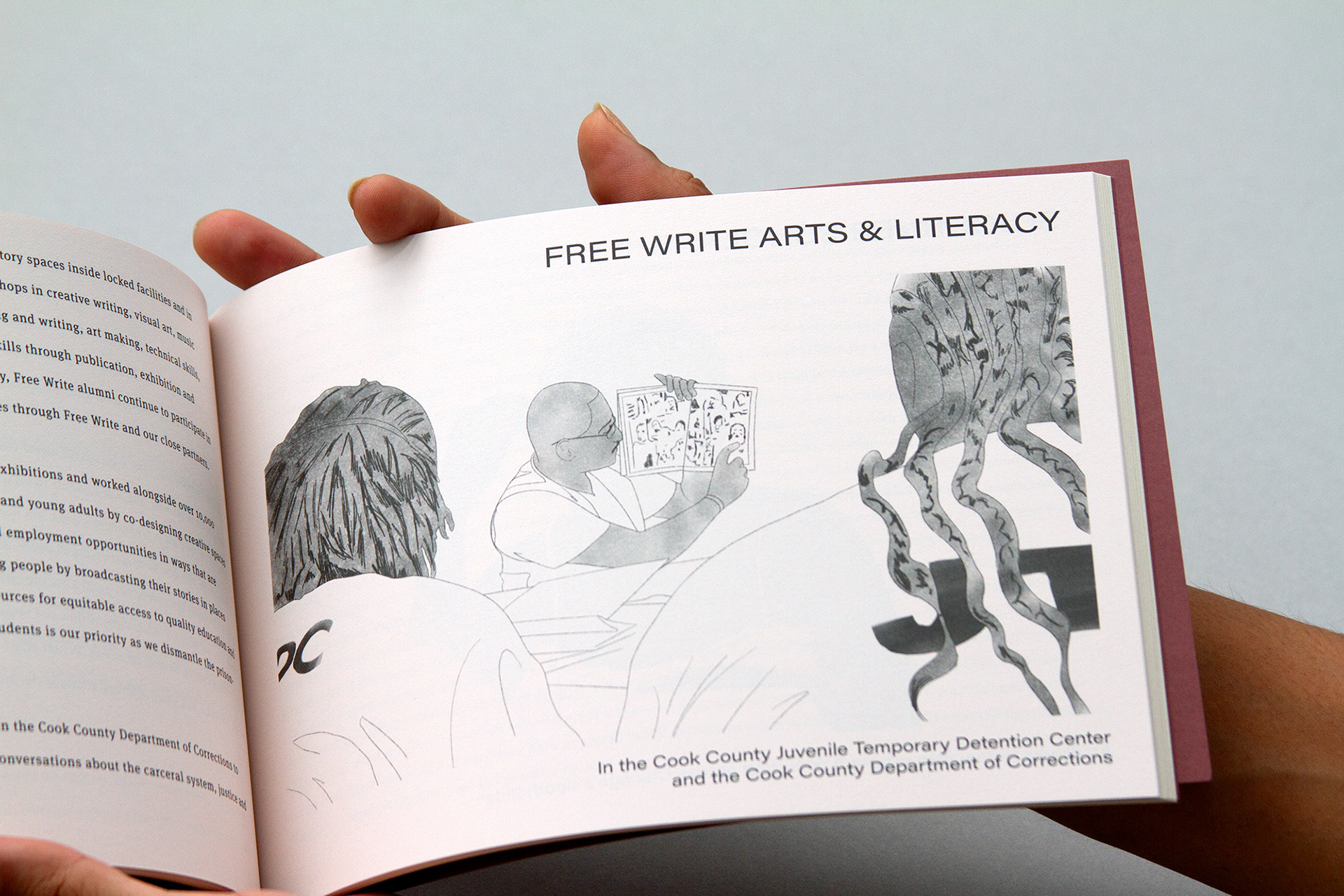The illustrations were commissioned by Candor Arts in collaboration with Illinois Humanities. They were published within the Envisioning Justice resource guide.